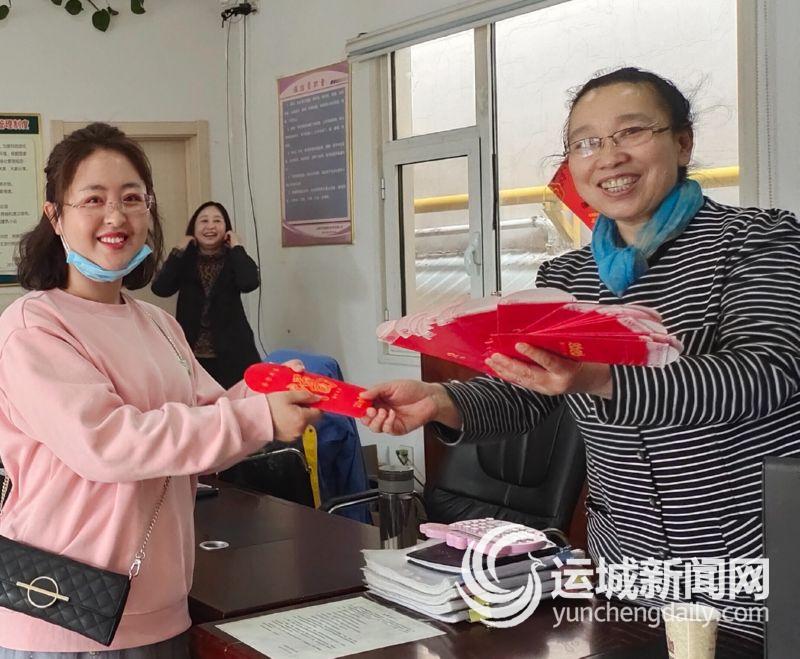 会上,该公司董事长王炯智充分肯定了女员工在工作中的尽职尽责、兢兢业业,感谢她们对公司的付出,祝福她们节日快乐。随后,该公司相关负责人为每名女员工送上100元红包(上图)。