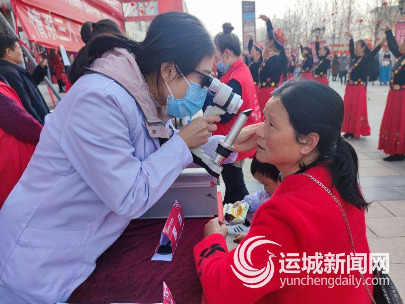▲医护人员给居民检查眼睛