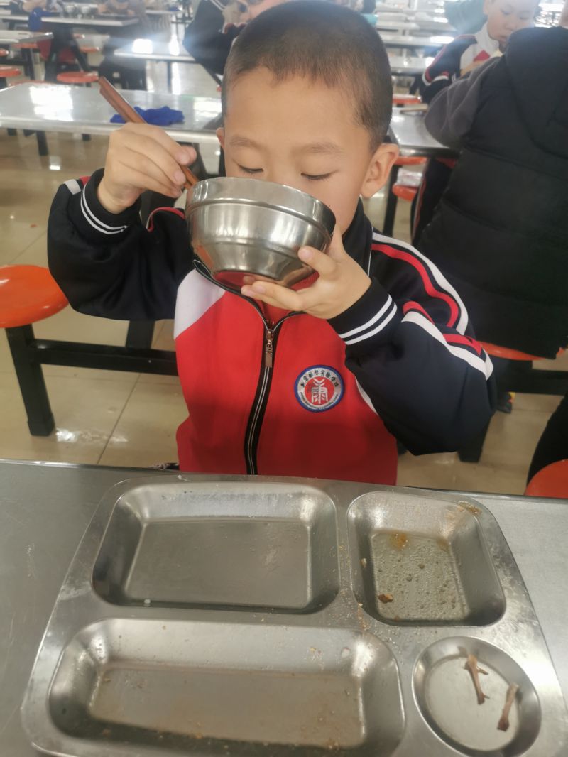 此外还有一个特色做法,就是学生间互评互助和自制管理。各班选出餐厅学生管理员,他们指出身边同学的就餐优秀表现和需改进之处,帮助学生增强节约粮食的意识。对于需要改进的学生,管理员会跟拍他的变化,一个月后进步明显的,将把其变化做成图文并茂的课件,鼓励学生,带动更多的学生养成良好习惯。而对于学生在家里和饭店就餐时,学校也鼓励学生拍照,记录他们践行“光盘行动”的瞬间。