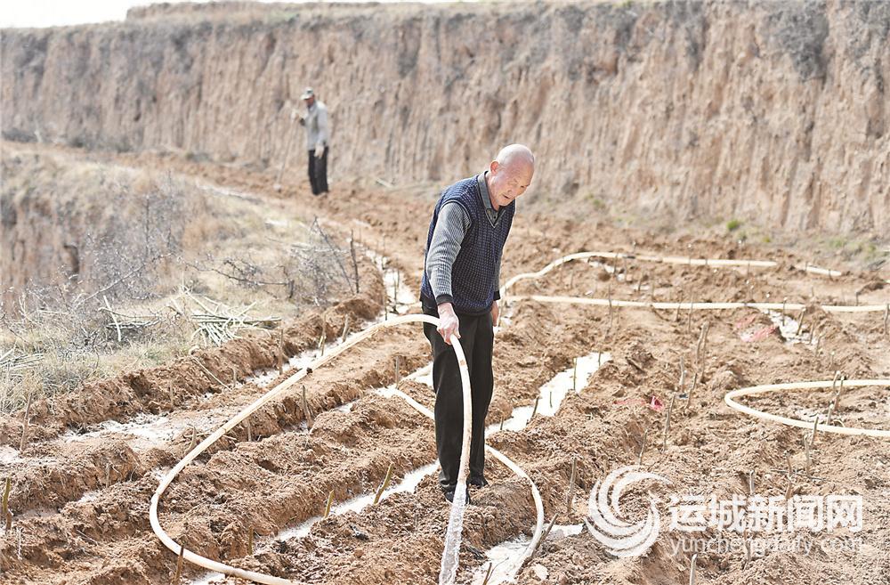 闻喜县郭家庄镇石键村组织种植专业合作社社员在岭上给新型杜仲育苗 特约摄影 王琪琳 摄