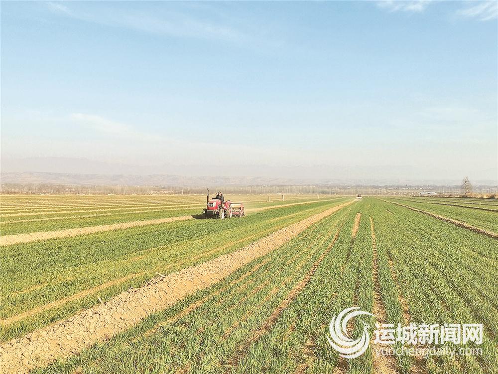 东恒农机专业合作社社员在为附近村庄的小麦追肥 记者 范 娜 摄