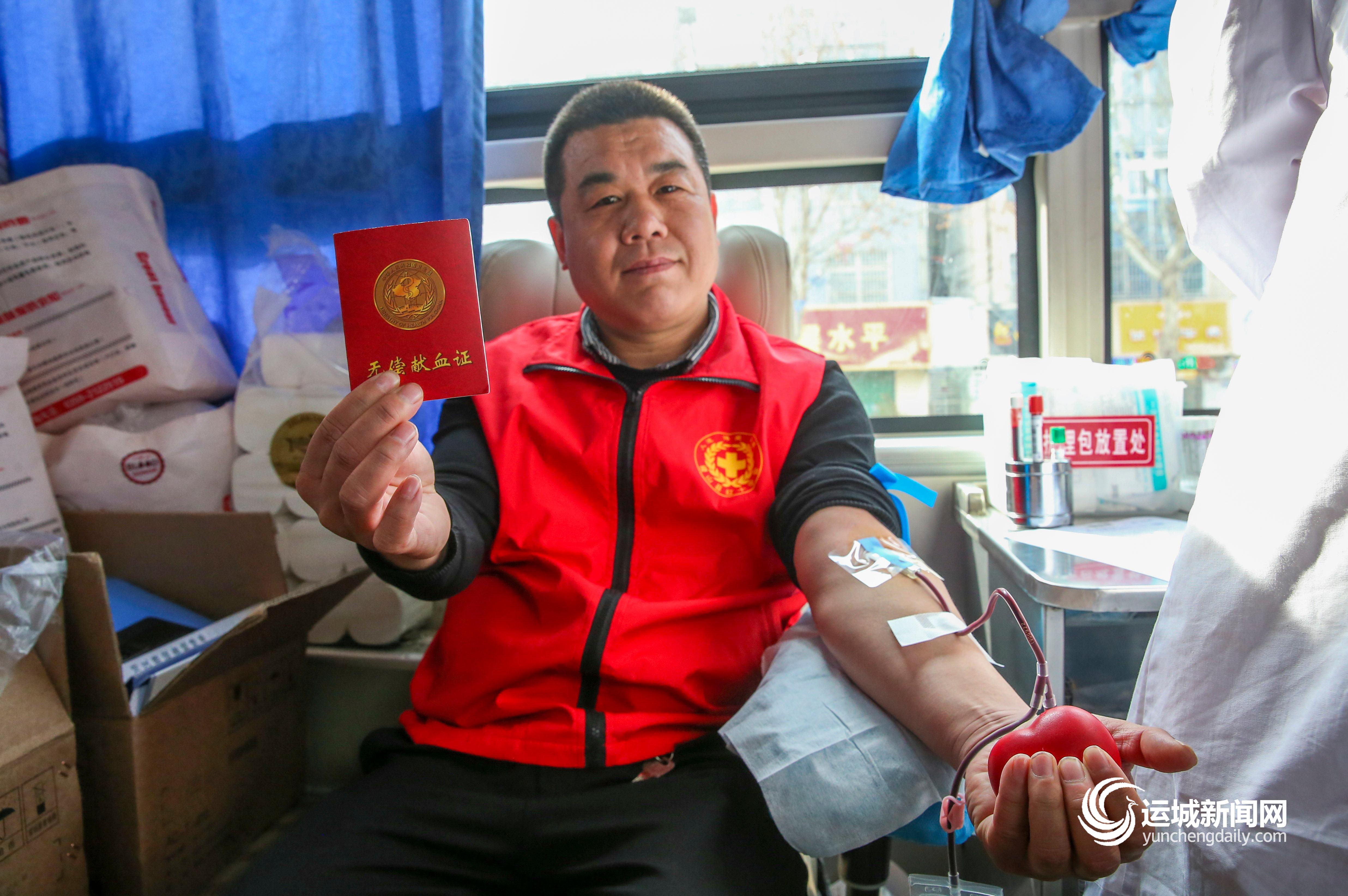 ▲近日,在稷山县委广场的流动献血车上,爱心志愿者纷纷加入献血队伍,义务献血,奉献爱心。史港泽 摄
