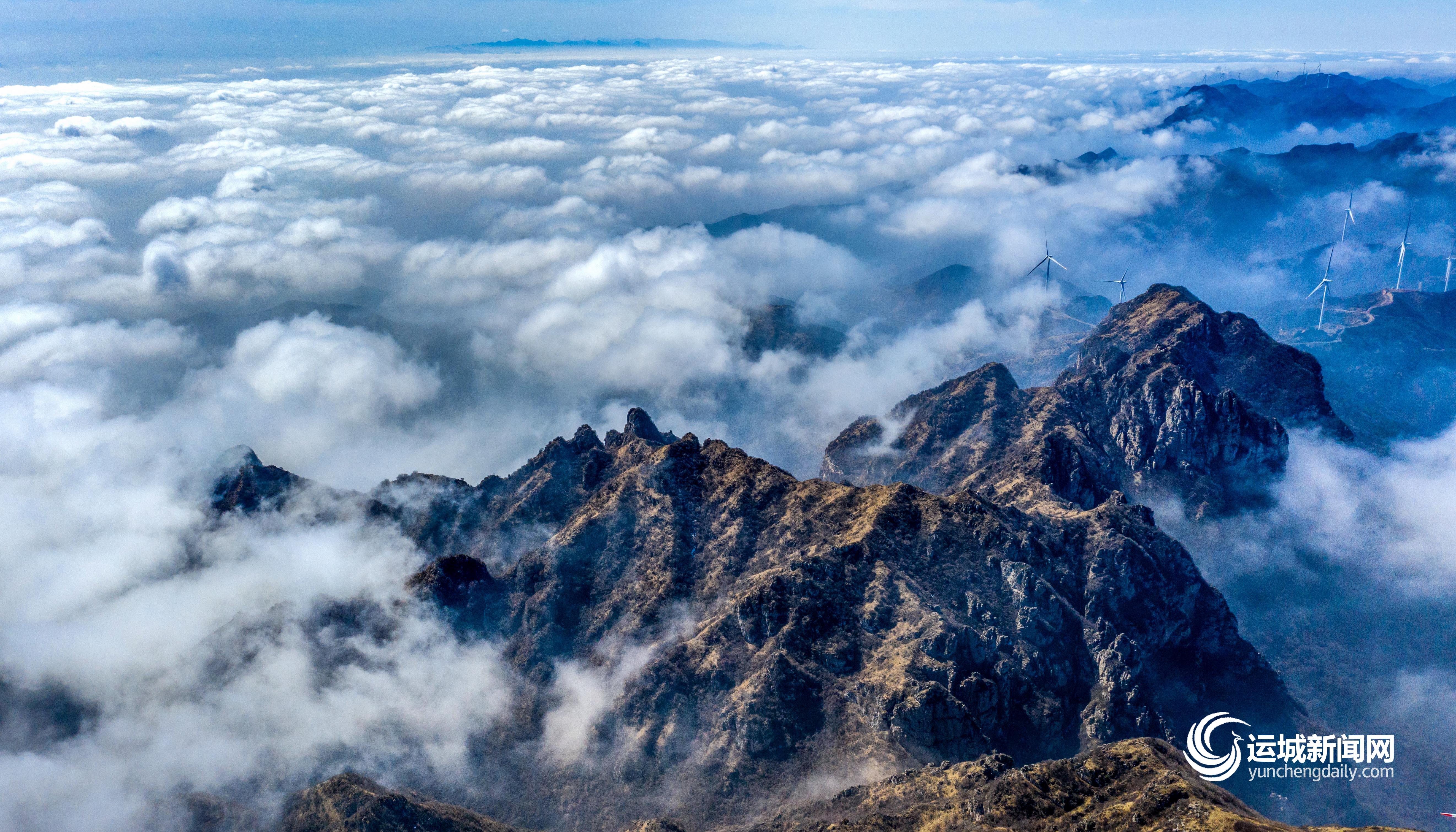 近日,受降雨天气影响,芮城县境内的中条山上出现了壮观的云海景观。高空俯瞰,云海波涛翻滚,浩瀚缥缈,蔚为壮观。 3月9日,在芮城县境内中条山上拍摄的云海景观。
