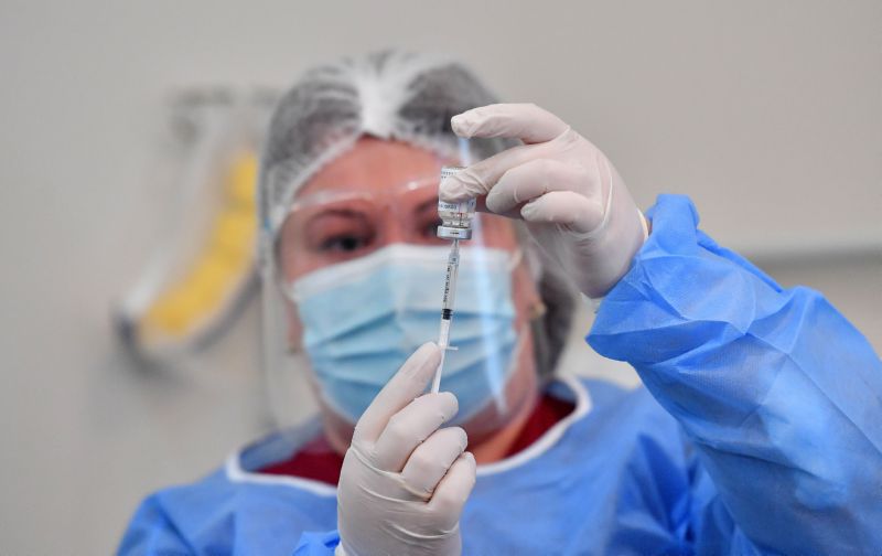 3月15日,一名护士在格鲁吉亚第比利斯展示新冠疫苗。当日,格鲁吉亚正式启动全国新冠疫苗接种工作。根据该国接种计划,一线医务人员将首先接种。 新华社发