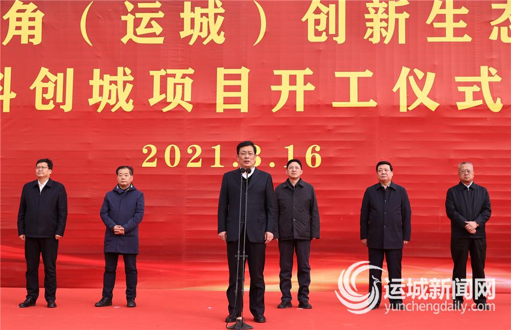 本报讯(记者 王文军)在全市上下深入贯彻全国两会精神,强力推进“项目建设年”的重要时刻,3月16日上午,黄河金三角(运城)创新生态集聚区科创城项目正式开工建设。以科创城项目的开工为标志,黄河金三角(运城)创新生态集聚区正式迈入实质性建设新阶段。市委书记丁小强出席开工仪式并宣布开工。市委副书记、市长储祥好出席开工仪式。市委副书记、政法委书记、黄河金三角(运城)创新生态集聚区建设指挥部常务副总指挥刘文华主持开工仪式。市领导邓雁平、张润喜、周跃武、陈杰、李浓、乔登州、潘志孝、董旭光等出席开工仪式。