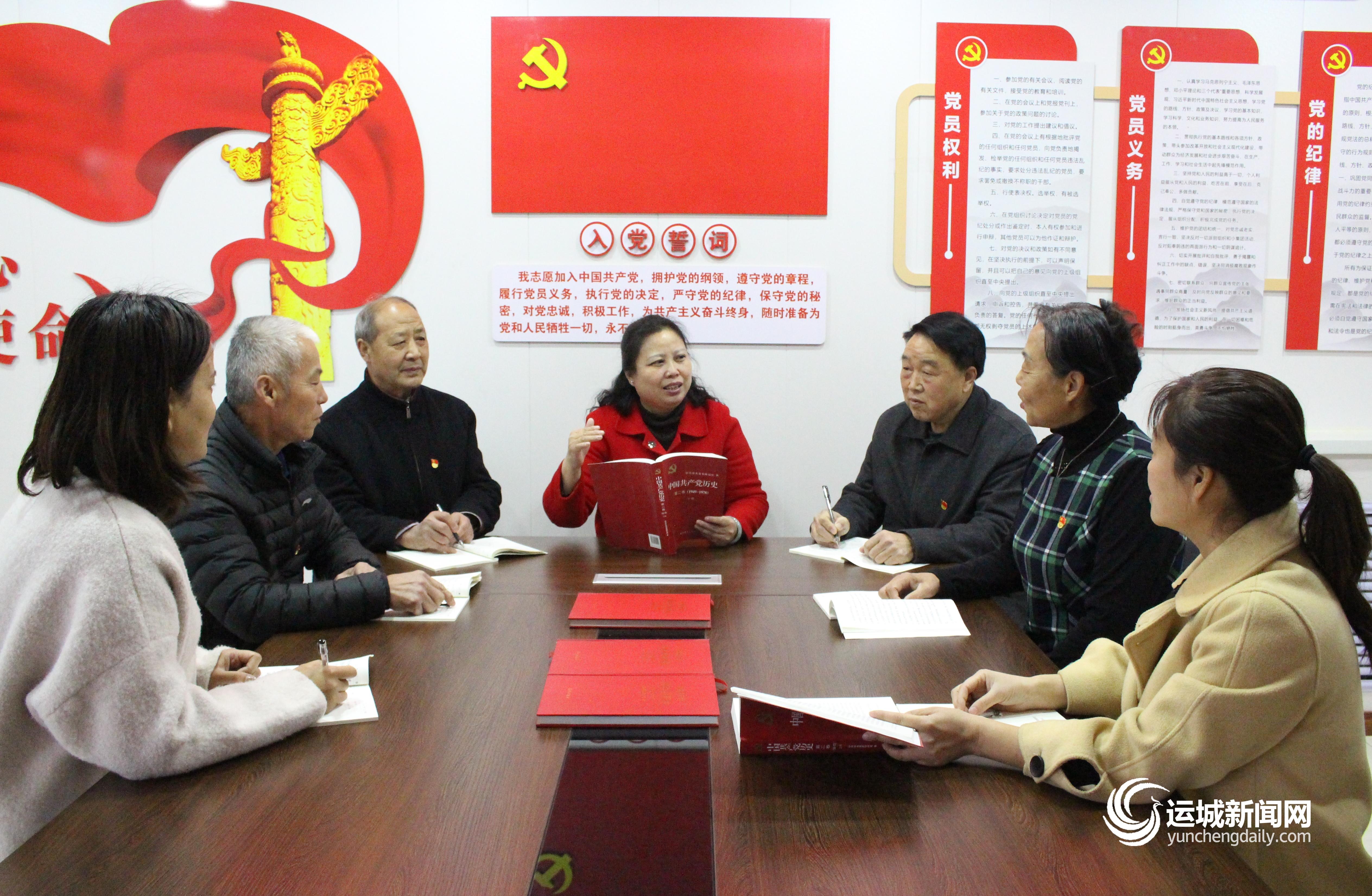 3月16日,闻喜县西城社区干部和部分共产党员在一起学习党史。