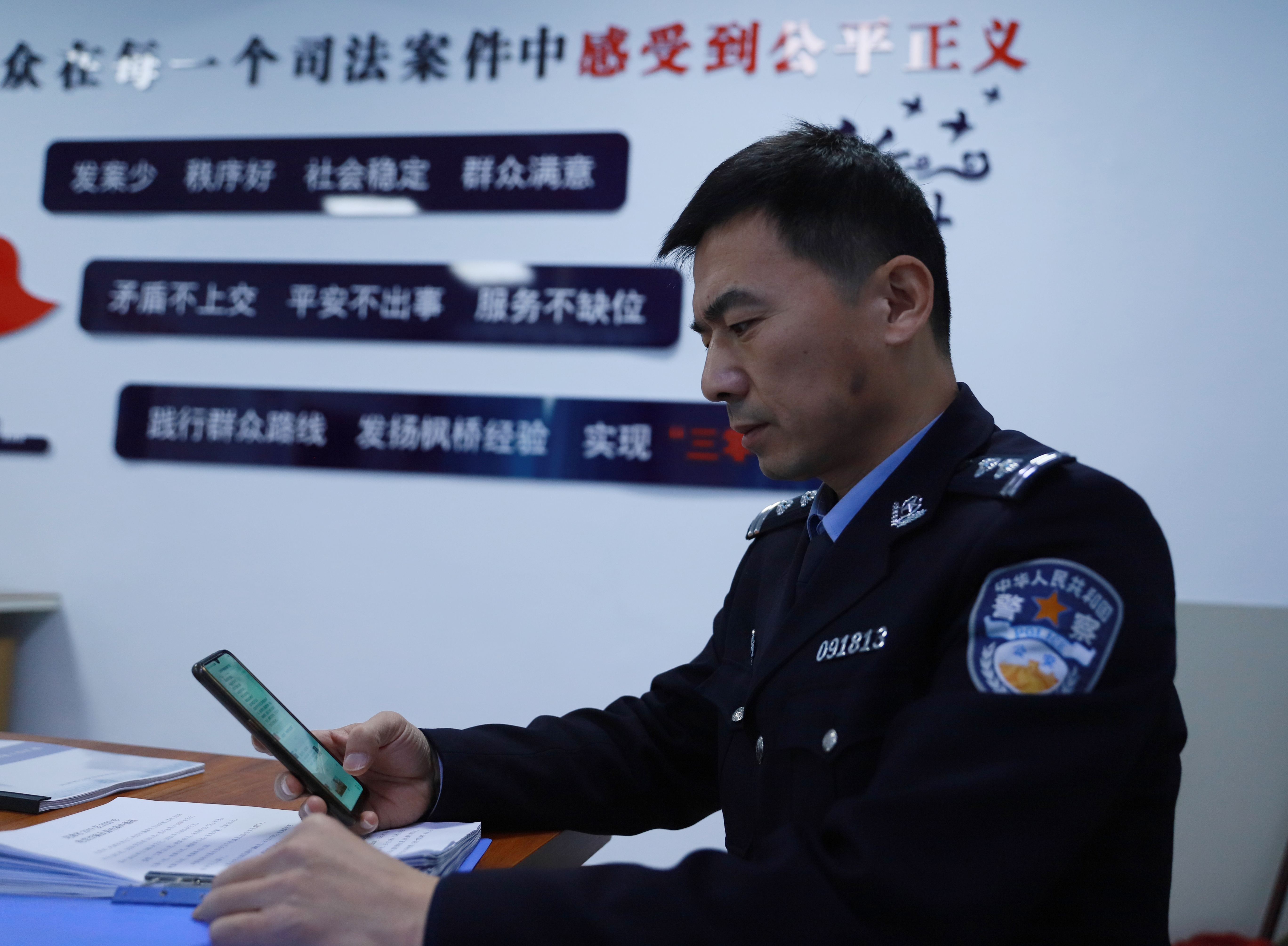 记者采访期间,周东华的手机“滴、滴、滴”地响个不停。周东华放下手头工作,打开手机,在群防群治的微信群里,耐心地回复群众发来的每一条信息。
