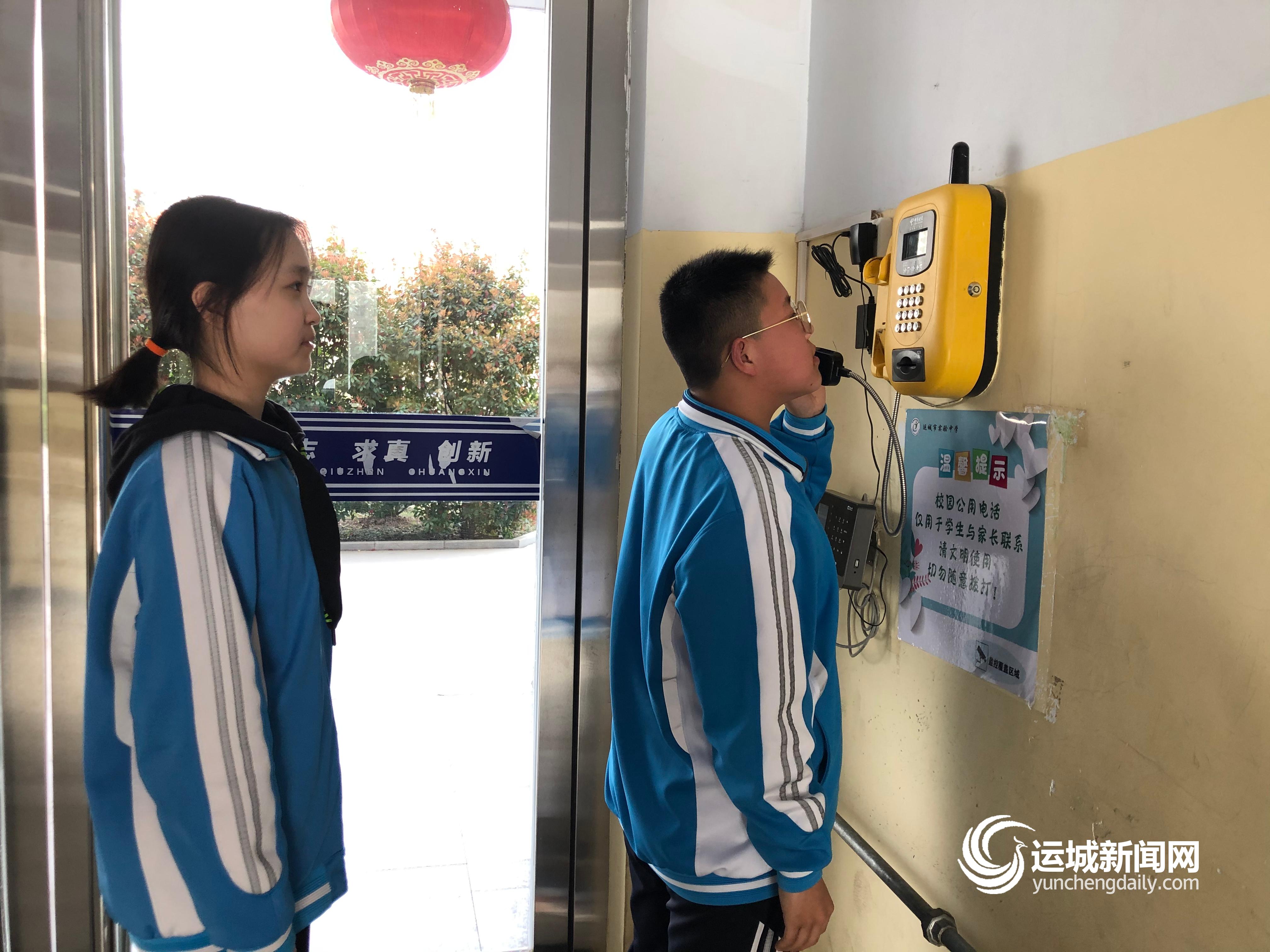 ▲市实验中学在校内安装4部公用电话,免费供学生使用 冯杨婕 摄
