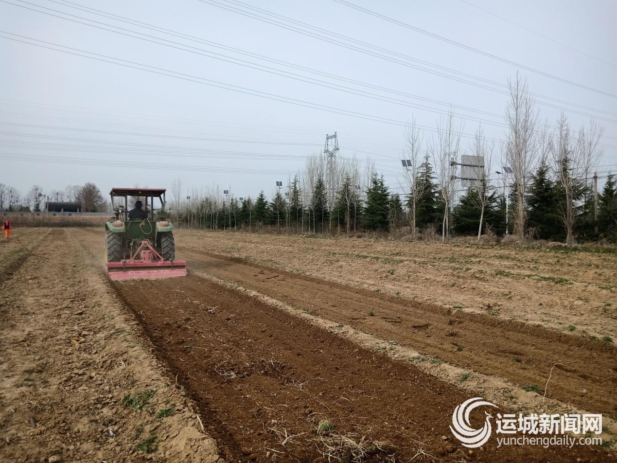 ▲近日,盐湖区中农福农机专业合作社联合社在大渠办北孙坞村平整土地。张循兵 摄