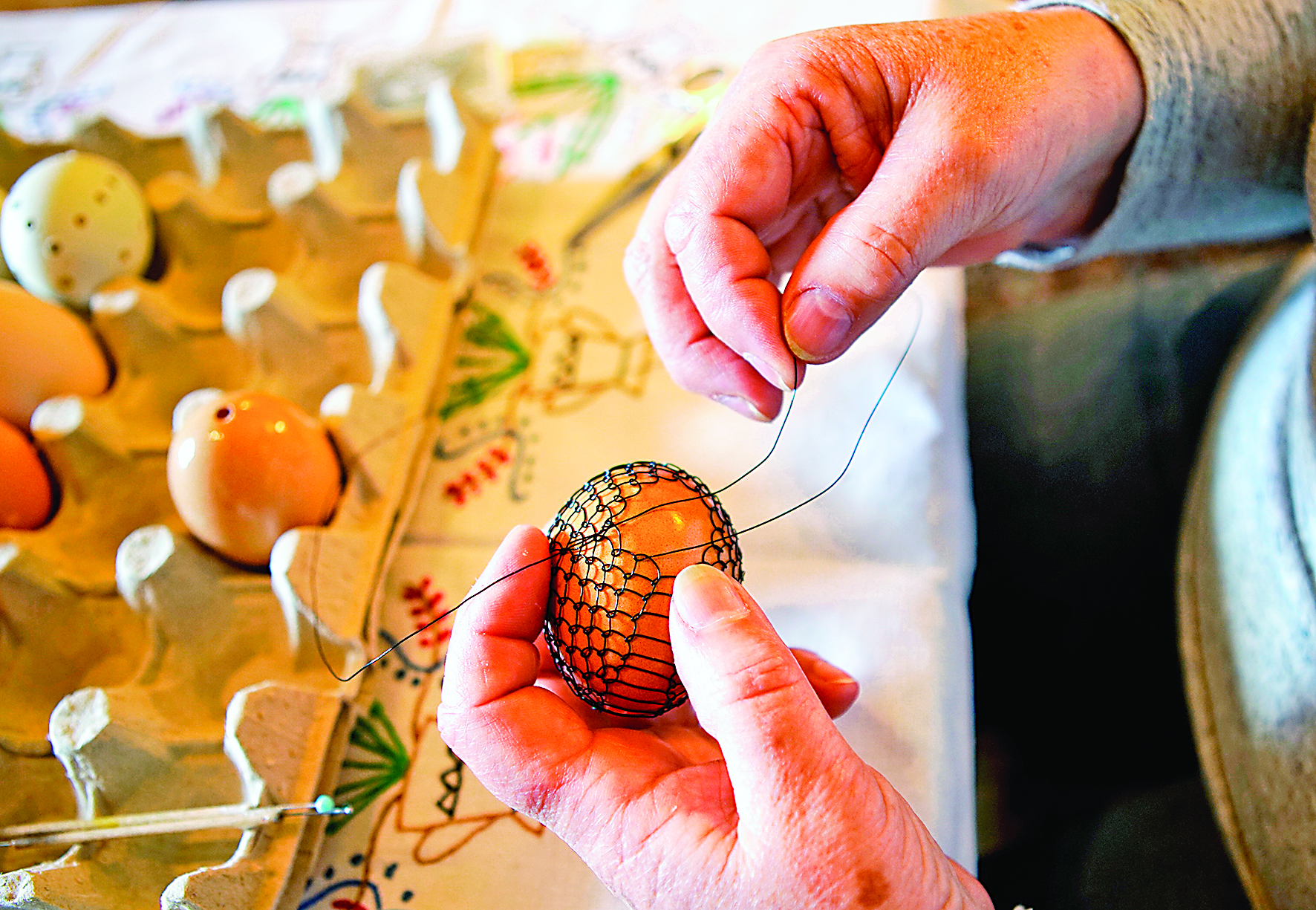 ▲3月27日,一名女子在捷克奇索维采制作复活节彩蛋。复活节是捷克重要节日之一,不少人保持着复活节前制作彩蛋的传统。他们在彩蛋上画出不同图案,用蜂蜡封住颜色,还用绳子等为彩蛋装饰,然后作为礼品赠送亲朋好友。