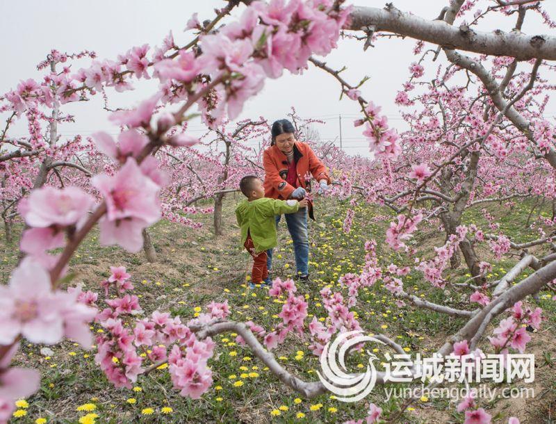 3月29日,万荣县南景村果农王汉臣和老伴带着孙子到村外的桃园赏花。