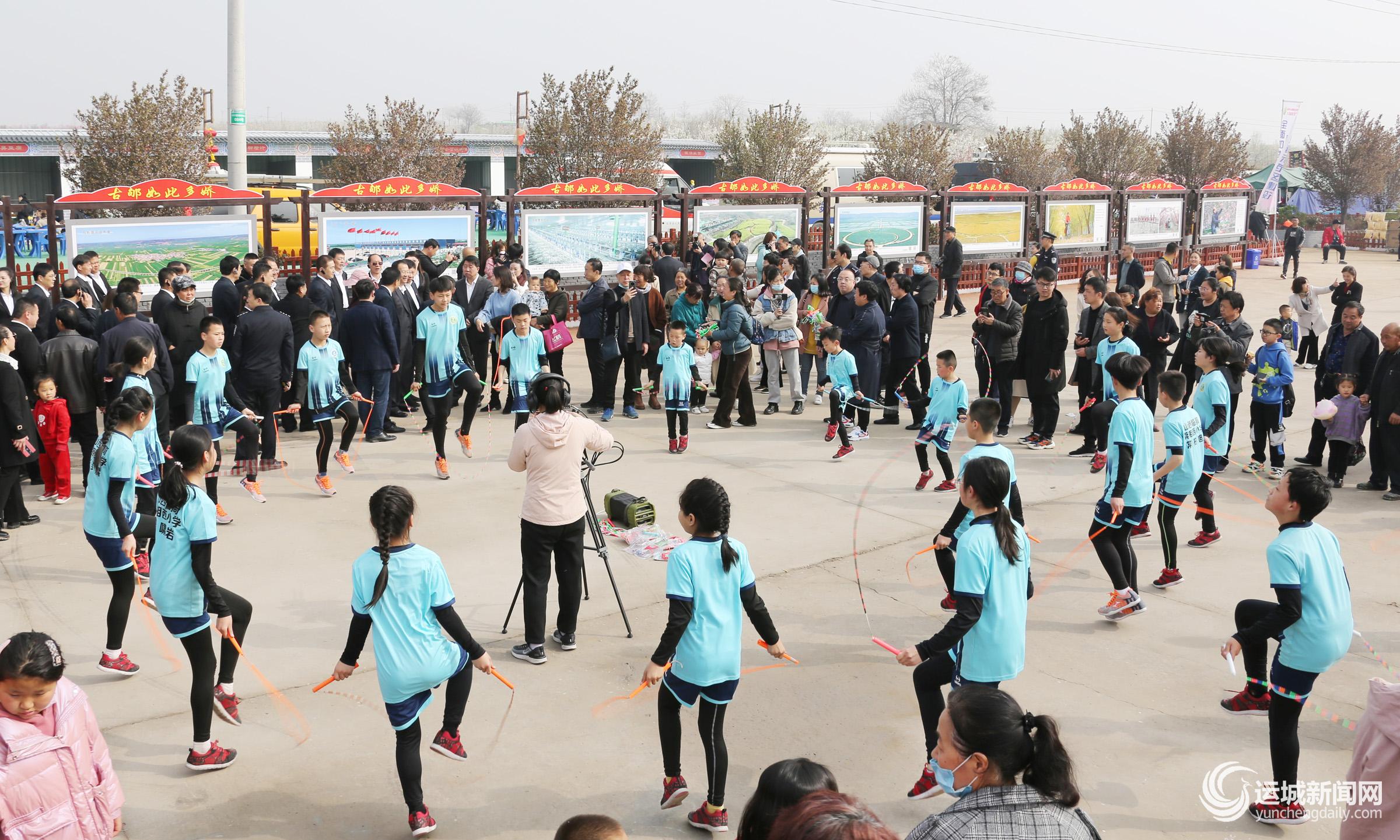 一阵熟悉的旋律在人群中响起,黄斗景梨花田园综合体核心区瞬时沸腾起来,在场干部群众挥舞着手中的五星红旗,随着旋律放声合唱……快闪《我和我的祖国》拉开了当天活动的序幕。舞蹈《春到古郇》讲述了临猗果业振兴的动人故事,展示了农文旅融合发展所带来的新气象、新变化;歌伴舞《美丽风光大田园》抒发了临猗人民践行“绿水青山就是金山银山”理念的自豪和热情;空竹表演《涑水竹韵》、花式跳绳表演等展现了临猗人民以饱满的精神状态迎接新时代的到来……丰富多彩、形式多样的文旅活动与万亩皎洁如雪的花海相织相融,绘就了一幅春花烂漫、风景如画的美丽乡村图景。
