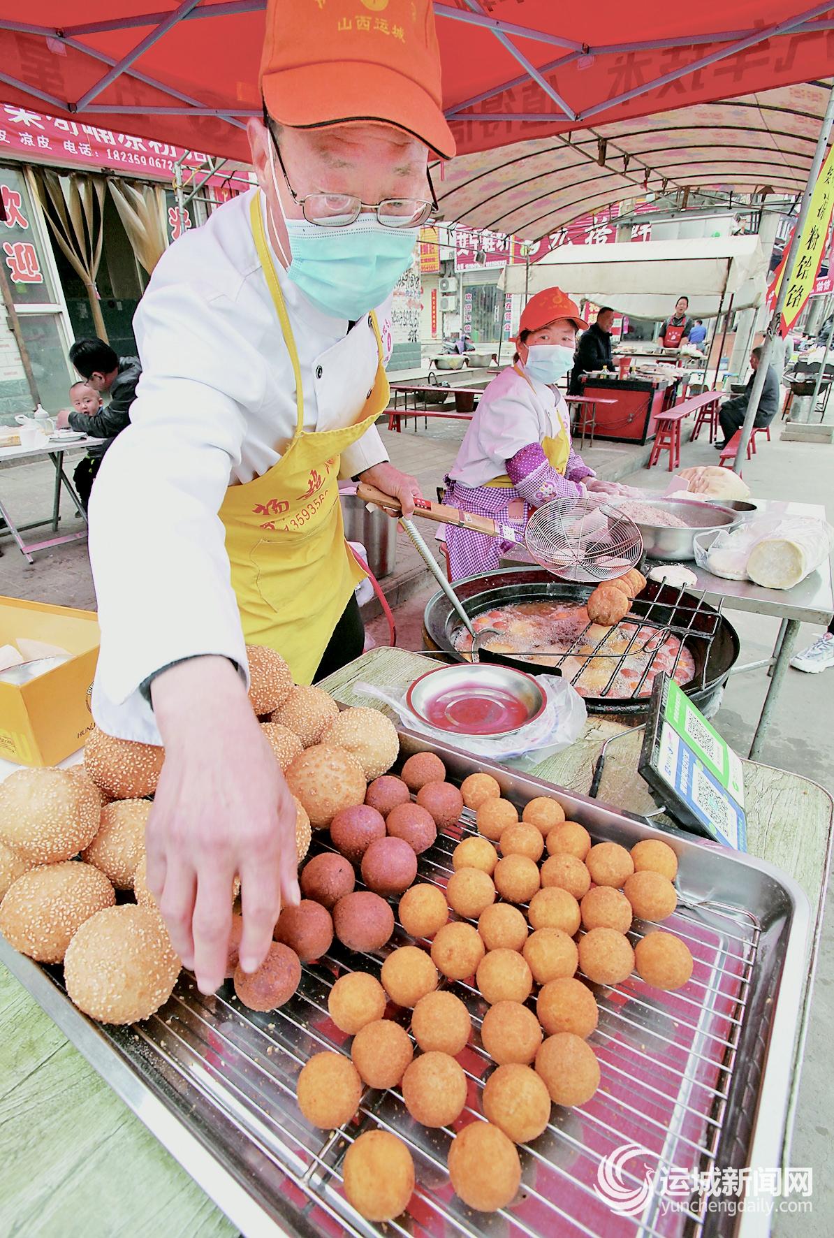 除了传统的老式油糕,还有红薯丸、紫薯丸、麻团、黍面枣糕等,刚出锅热气腾腾、黄亮圆润,香甜可口。