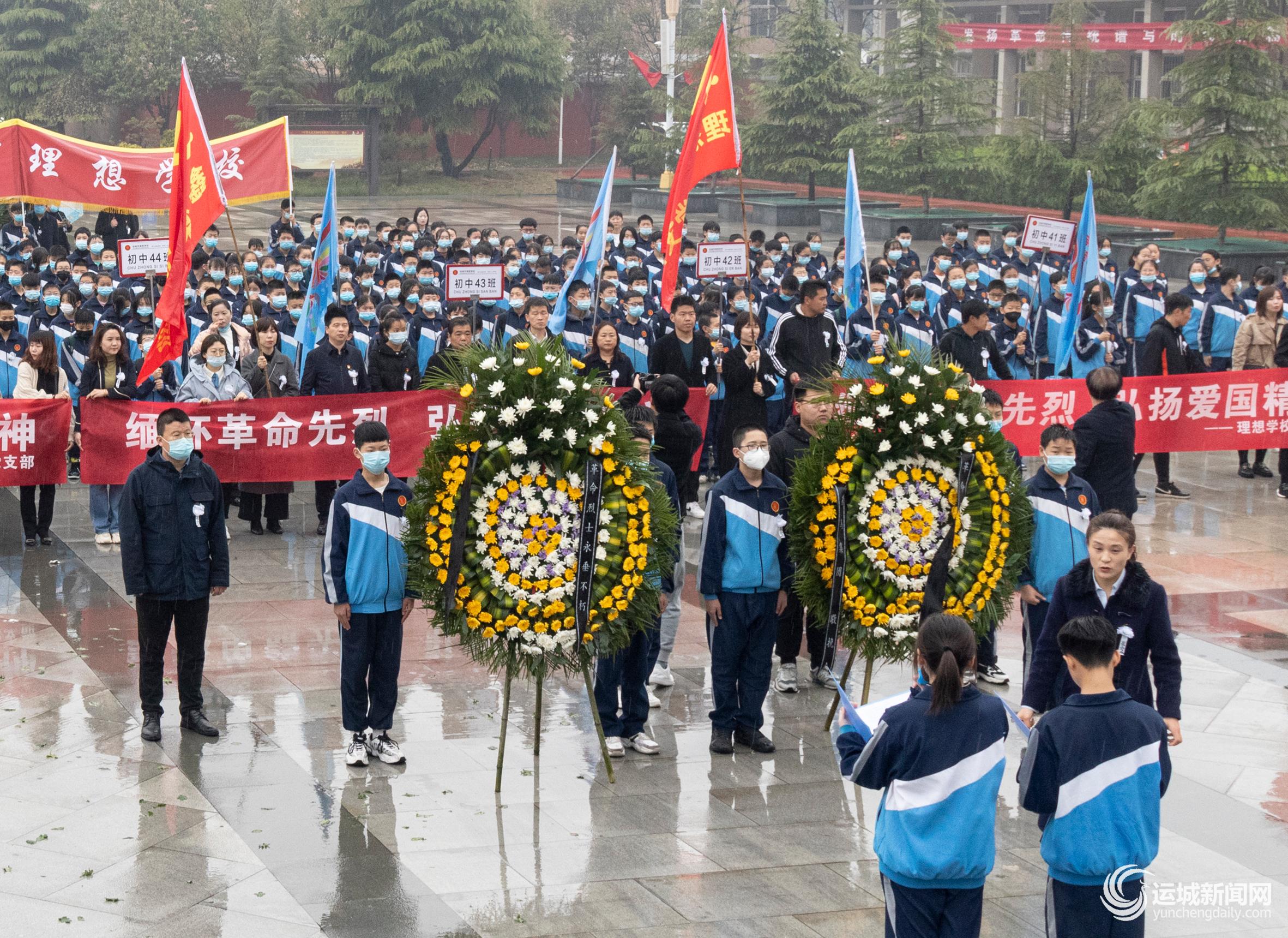 4月2日,春雨绵绵,盐湖区理想学校组织师生来到烈士陵园,祭奠缅怀革命先烈。