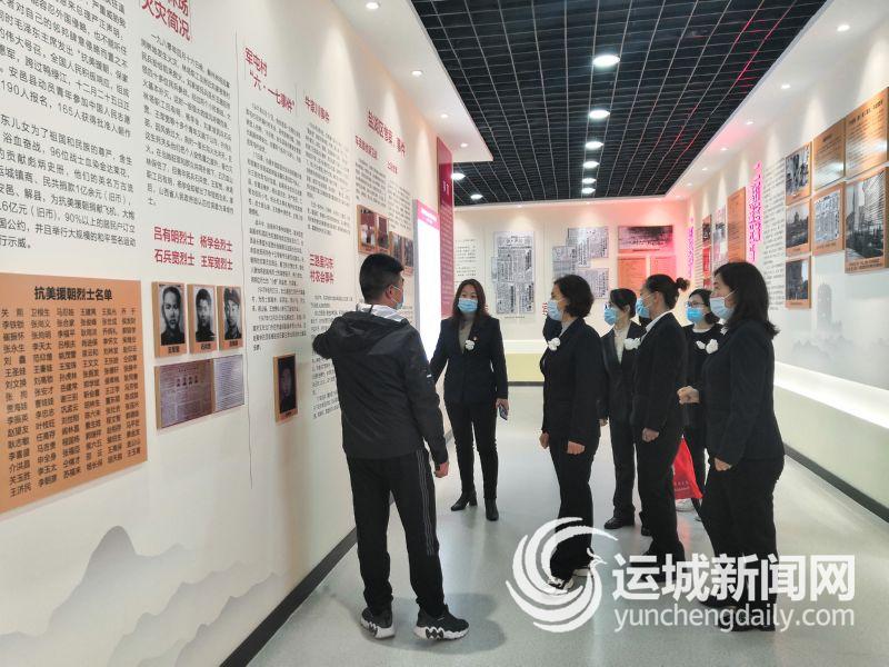 在缅怀革命先烈仪式上,该社区党员瞻仰了运城解放纪念碑,并向革命先烈敬献花圈,重温入党誓词。随后,大家参观了运城解放纪念馆,聆听讲解员介绍了牛庄惨案等历史事件,了解了革命烈士的英勇事迹(右图)。