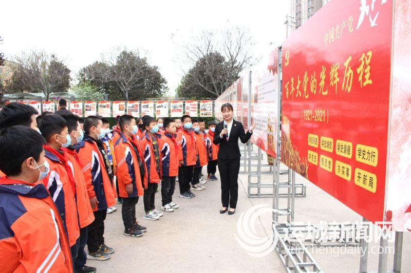 4月1日,学生在闻喜县青少年活动中心参观党史展。