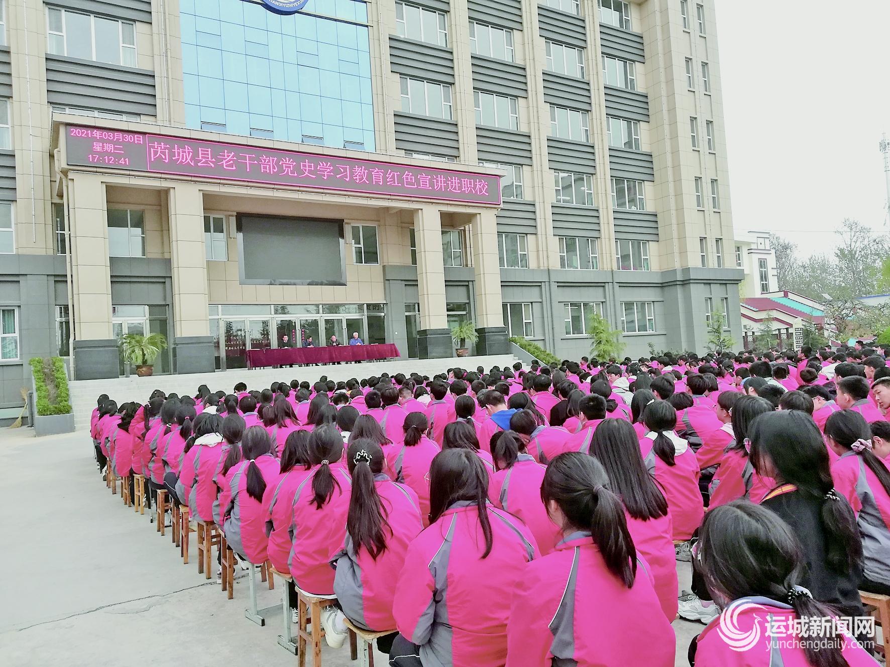 运城晚报讯 近日,芮城县委老干部局党史学习教育红色宣讲会走进芮城第一职业学校。宣讲团成员刘百宽、郭栋对该校1000余名学生进行了红色宣讲。
