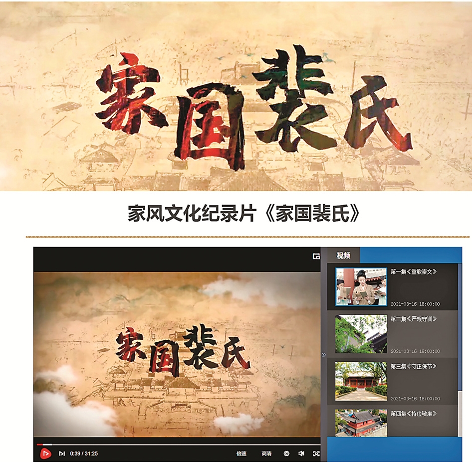 中央纪委国家监委网站刊登了市纪委监委制作的家风文化纪录片《家国裴氏》