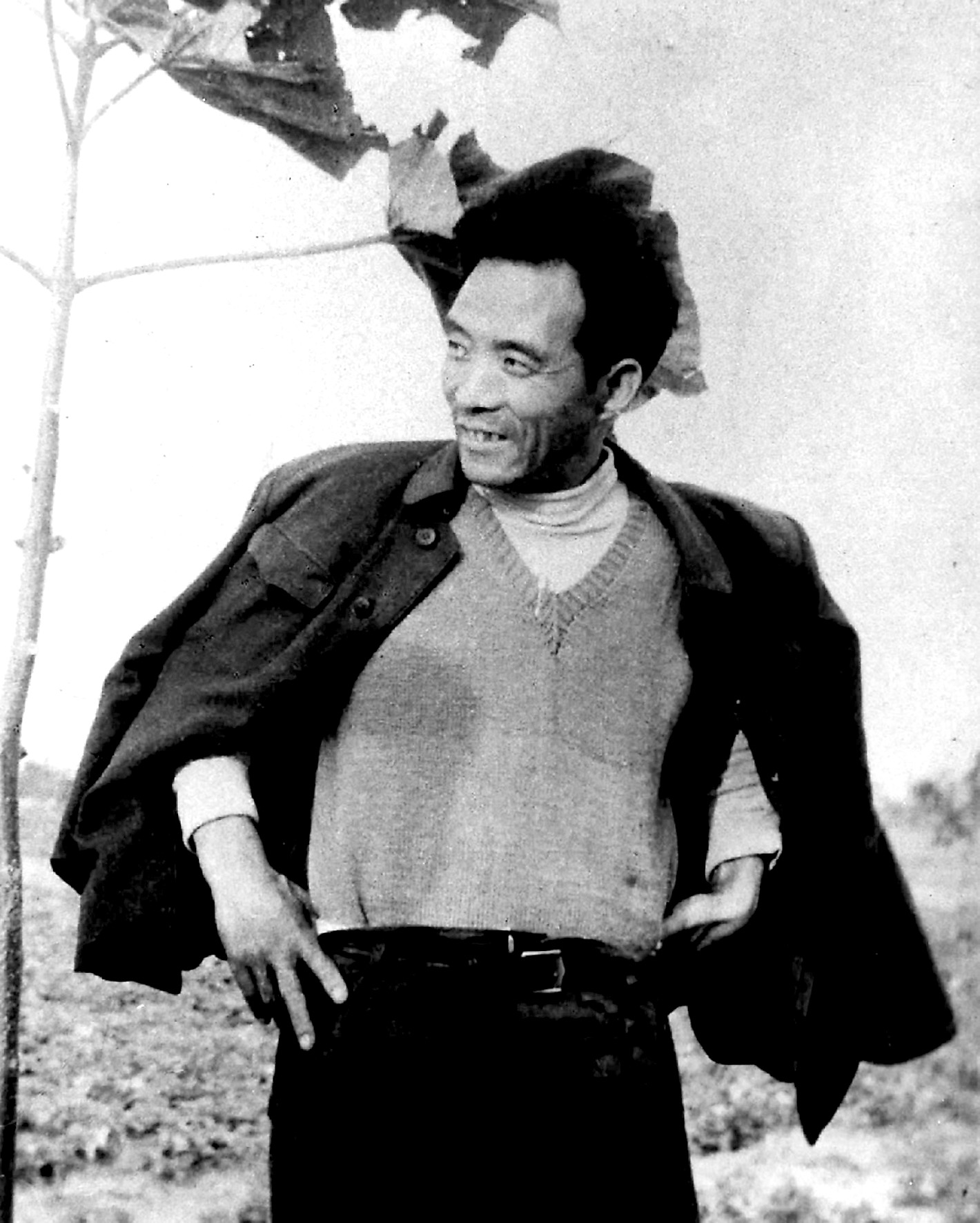 焦裕禄在泡桐前的留影(资料照片) 新华社发(刘俊生 摄)