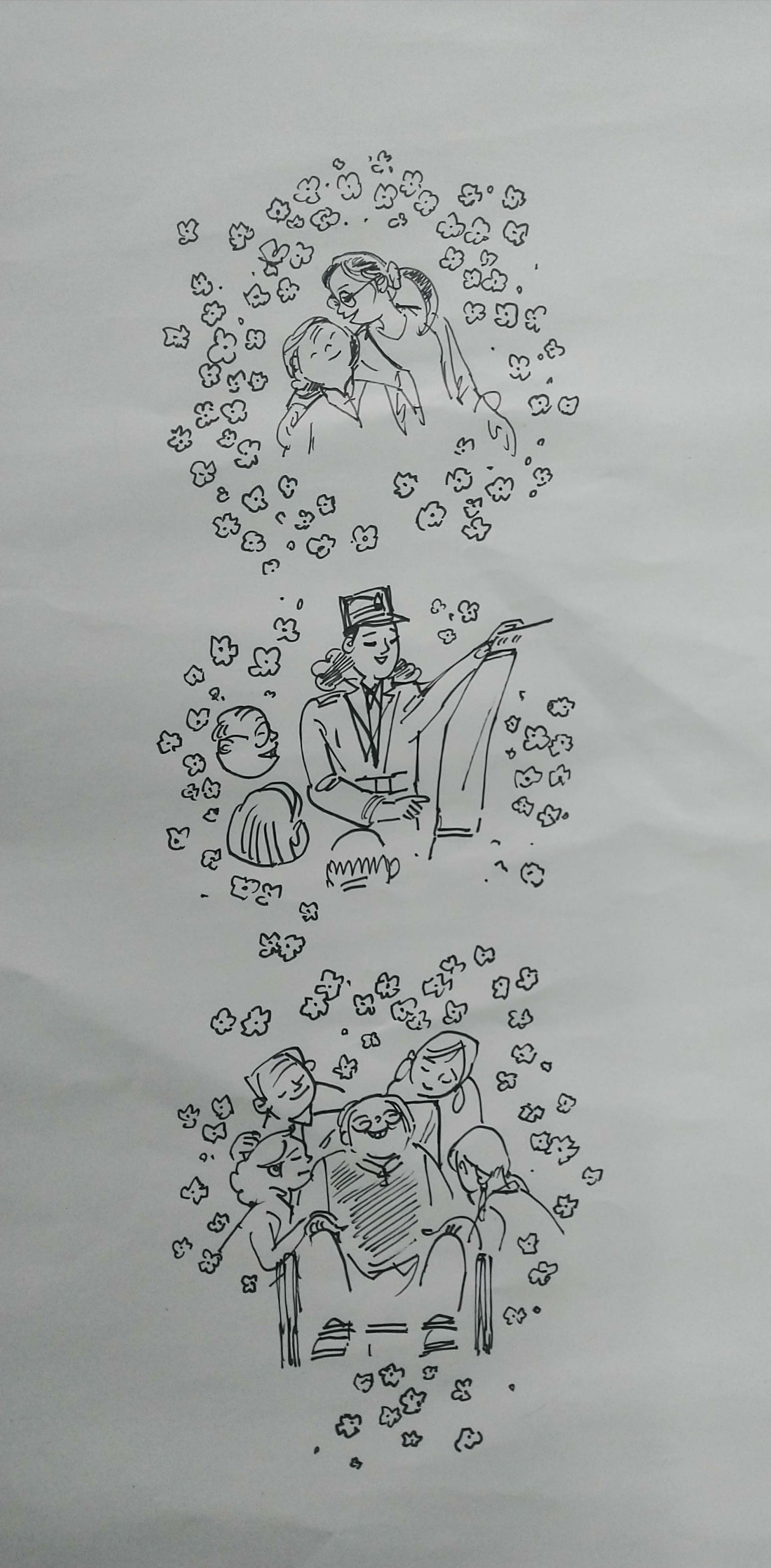 一楼居民孙师傅的老伴失忆、不能行走。孙师傅的儿女们,每天把母亲抱到户外,让母亲坐在轮椅上晒太阳,儿女们围在母亲身边,给母亲讲着身边发生的趣事。尽管母亲毫无反应,但是他们一直讲得有滋有味,笑声不断。此时此刻,无论是对老母亲,还是孙师傅,以及正围着母亲的儿女们来说,这不正是他们一家人想要的幸福吗?