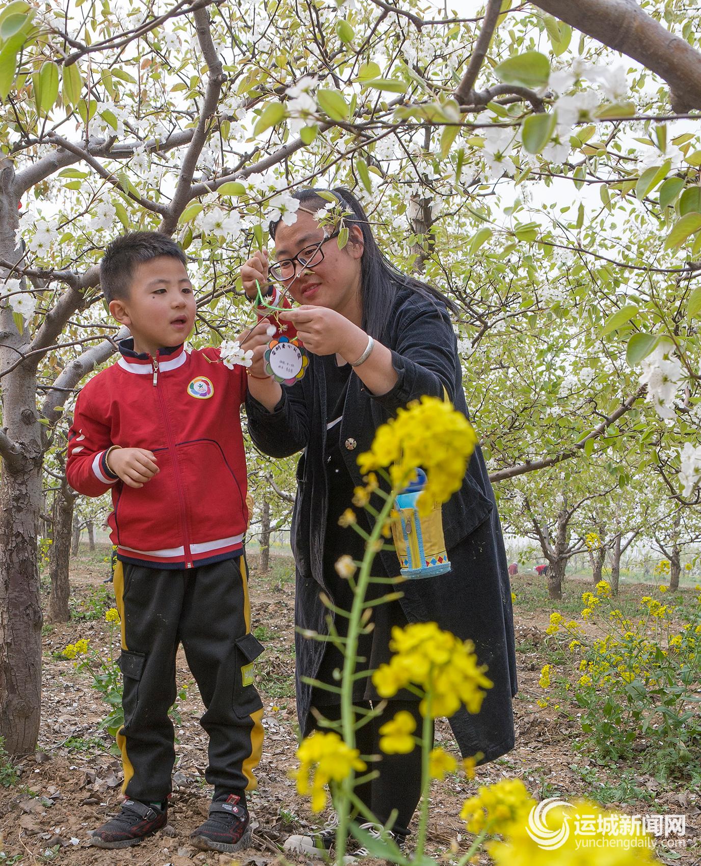▲4月7日,在万荣县万泉村脱贫巩固户贾哲贵的梨树园,该县六一幼儿园的100多名小朋友与家长一道踏青赏花,认领梨树110棵,待收获时将以略高于市场价的价格买下认领梨树所产的梨。 六一幼儿园把帮助刚脱贫的农民巩固增收成果列入纪念建党100周年系列活动中,引导孩子们从小知党恩、献爱心,为乡村振兴“增砖添瓦”。特约摄影 李克荣