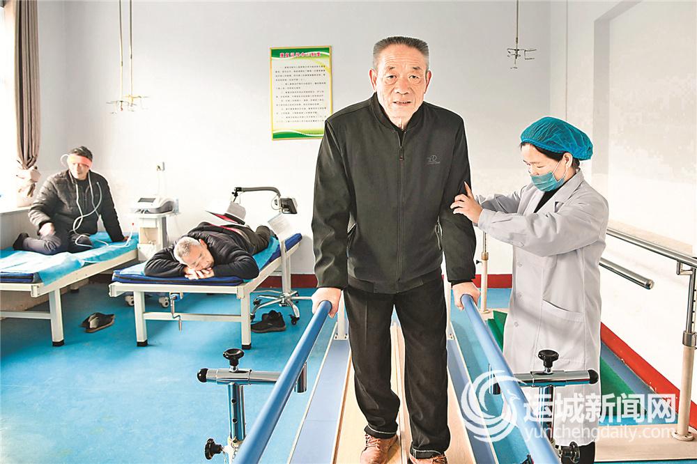 4月5日,闻喜县河底镇中心卫生院康复医疗科医务人员在指导患者做康复锻炼。