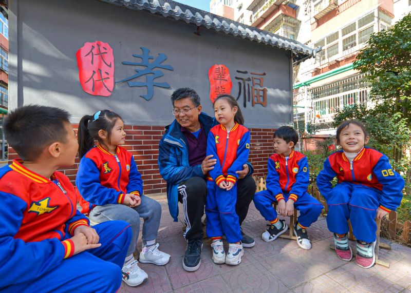 ▲2020年11月2日,在河北省邯郸市邯山区开展的“听爷爷奶奶讲家风”主题活动中,宣讲员向孩子们讲家风家训故事。 新华社记者 王晓 摄