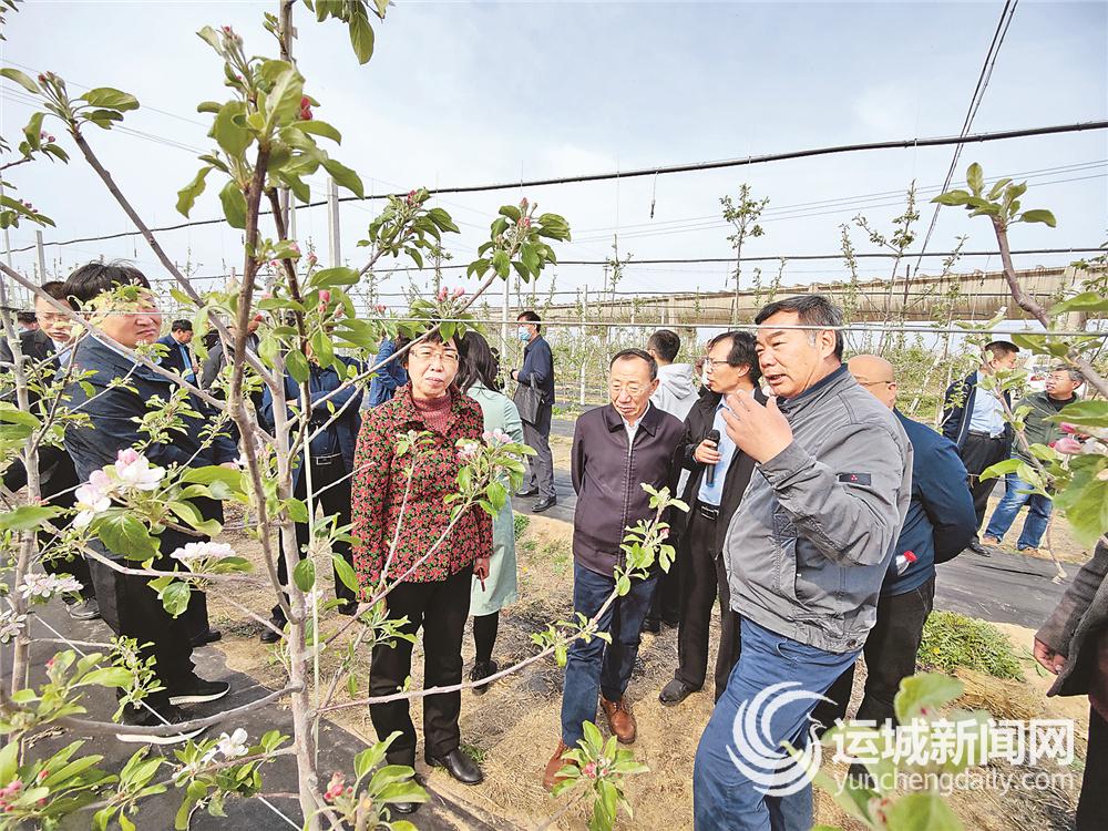 运城晚报讯(记者 刘凯华 李婷)4月9日,来自全国各地的果树专家到我市学习交流,现场观摩运城现代的优质轻简高效果树栽培技术。活动中,果树专家与果农热情互动,专家就果园管理、果树修剪、疏花疏果的时机、苹果免套袋和病虫害绿色防控等进行了调研并召开课题交流会。