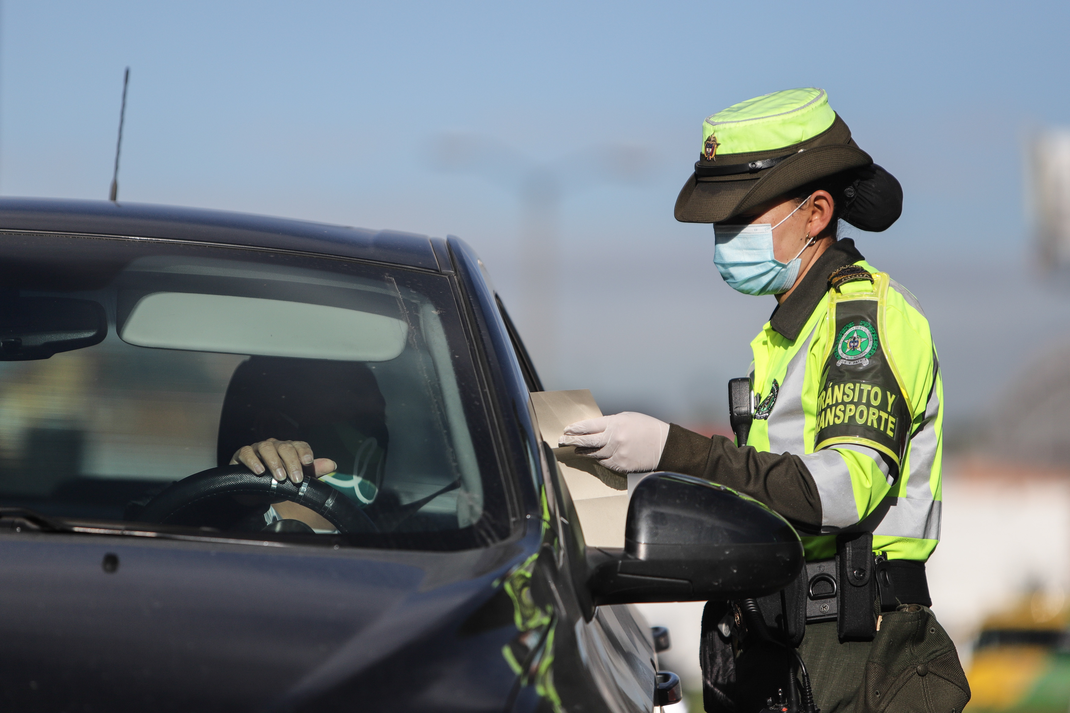 ▲4月10日,哥伦比亚波哥大交警检查车辆驾驶员证件及出行事由。为应对第三波新冠疫情,哥伦比亚首都波哥大自10日0时起至13日4时实行全民隔离,其间禁止非必要人员流动。