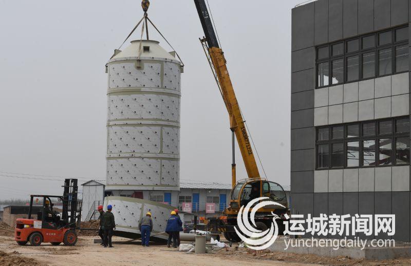图为运城润泰环保科技公司在吊装设备 特约摄影 王琪琳 摄