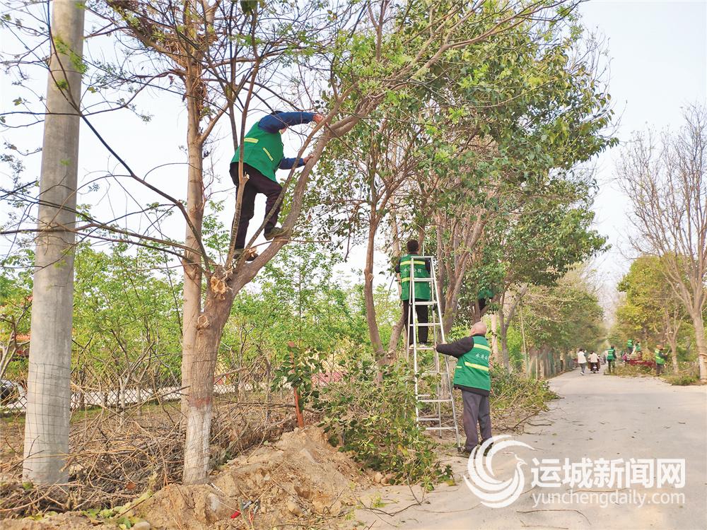 运城晚报讯(记者 祁克宁 通讯员 皮海峰)近日,永济市公园服务中心党支部组织干部职工,对革命老区七社村主干道行道树及绿篱进行整形修剪。