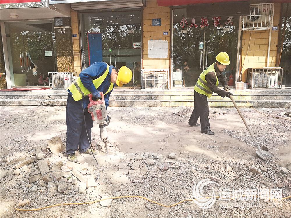运城晚报讯(记者 李婷)4月10日,在市区红旗东街民生花庭小区临街商铺门口,施工人员在对地面进行基础层处理作业。据悉,该项目为红旗街人行道升级改造工程,施工路段为学苑路至禹西路段,主要对街道临街商铺前的地面进行升级改造。
