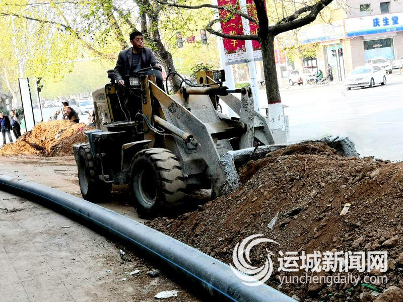 4月12日,垣曲县舜王南街,自来水公司组织人员更换输送水管。