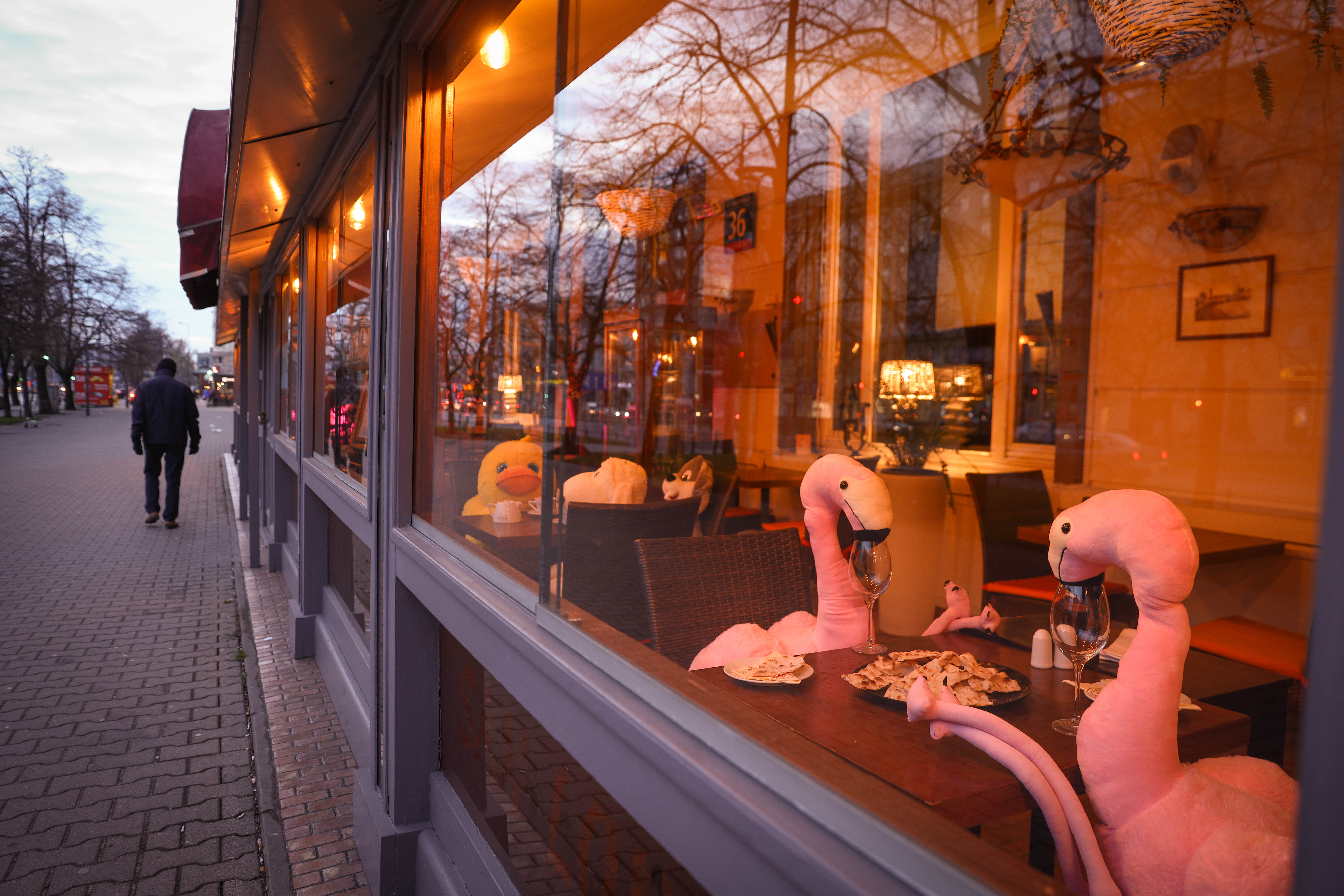 ▲4月13日,波兰首都华沙一家餐馆将动物玩偶摆放在靠窗座位上吸引顾客。受新一轮疫情影响,波兰实施较严格的防控措施。餐饮业受到禁止堂食只能提供外卖限制,经营受到严重影响,不得不采取多种措施吸引顾客。