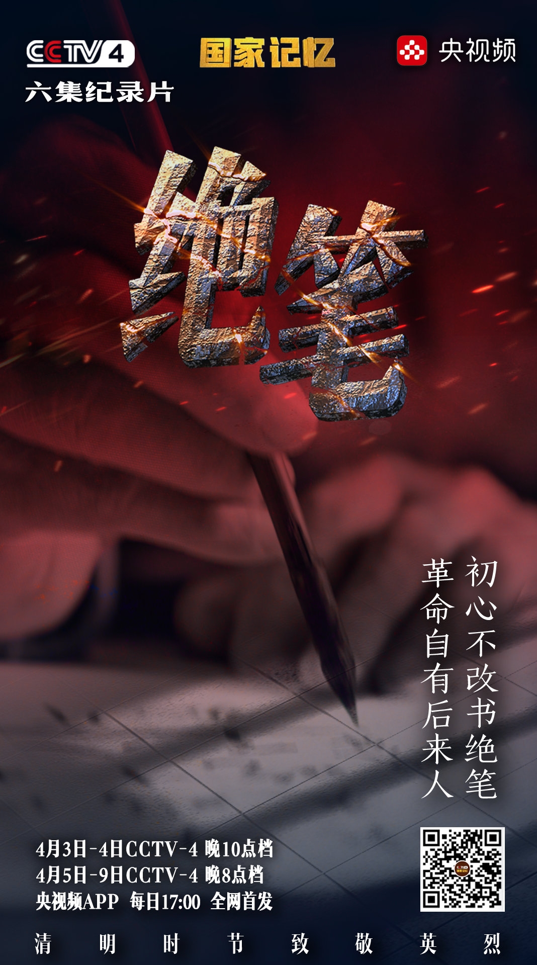 《绝笔》是中央广播电视总台华语环球节目中心《国家记忆》栏目推出的特别节目。该片紧紧围绕革命烈士的遗书、家信、入党誓词等,深度挖掘他们向死而生、不改初心的理想信念,展现出他们在生命的最后一刻依旧坚定的信仰与不变的追求。
