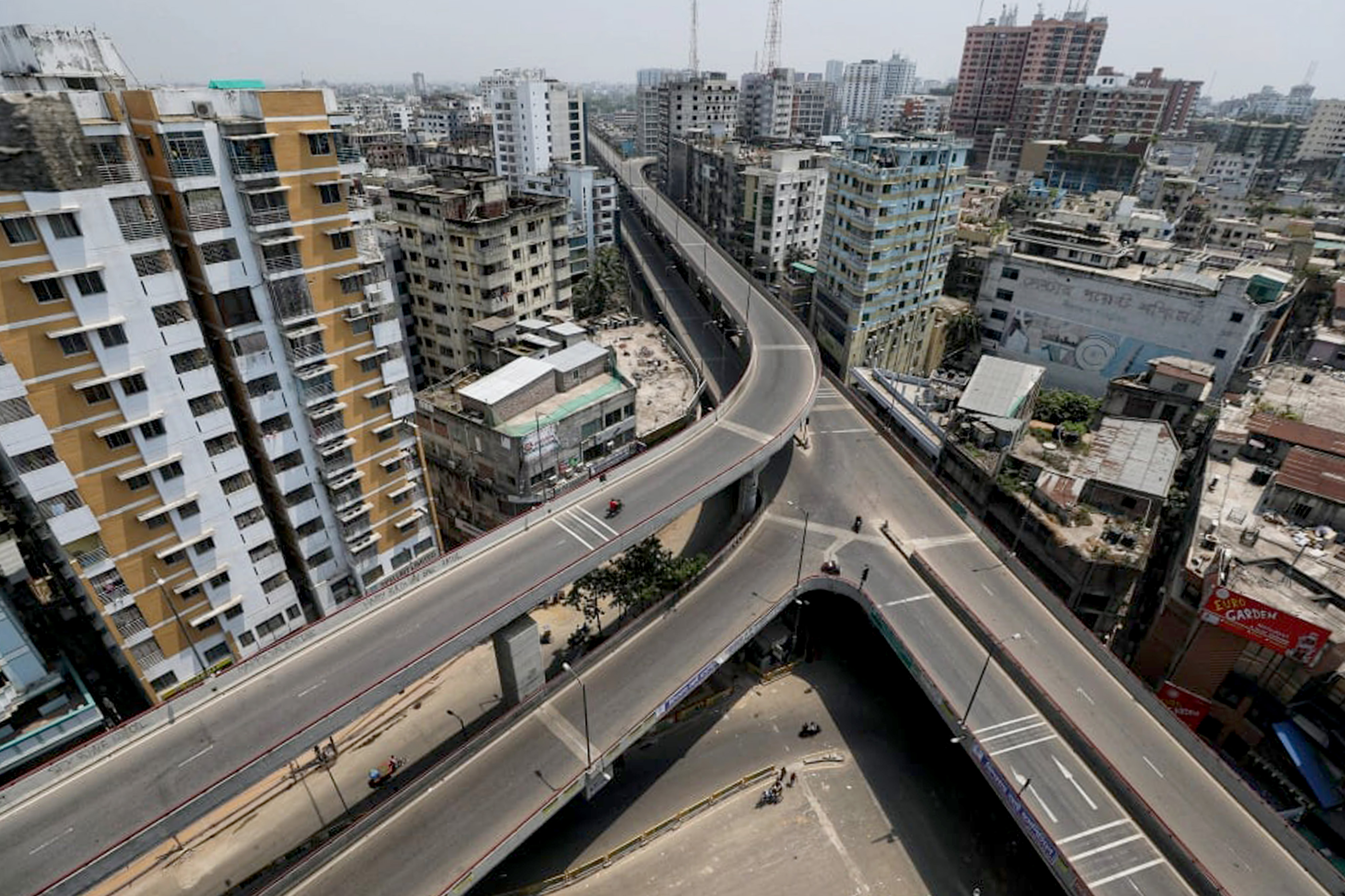 ▲这是4月14日在孟加拉国达卡拍摄的空旷的道路。