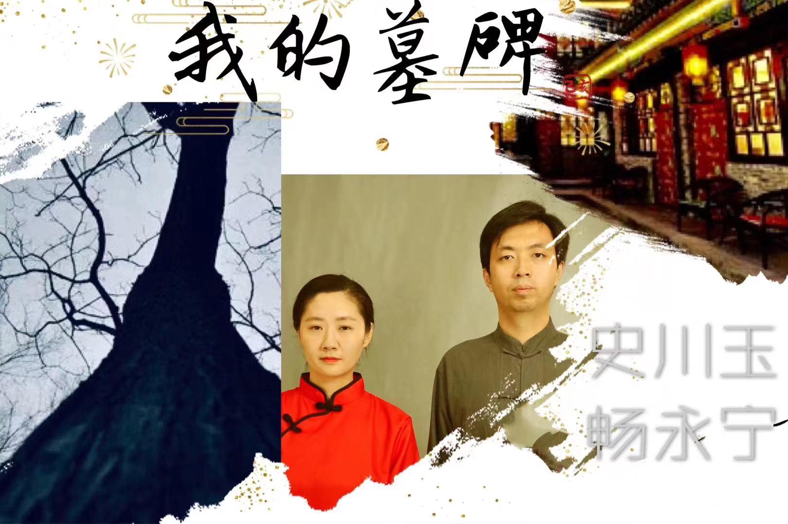 ▲史川玉(左)和畅永宁朗诵《我的墓碑》背景图