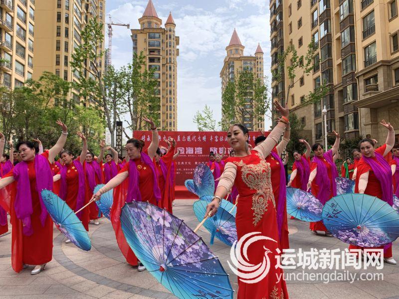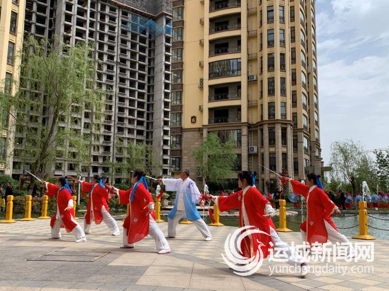 活动现场,唐装、汉服、旗袍等表演队,分别在小区通道、广场、喷泉旁进行表演,吸引了众多居民观看,演员们与居民互动,现场气氛愉快轻松。