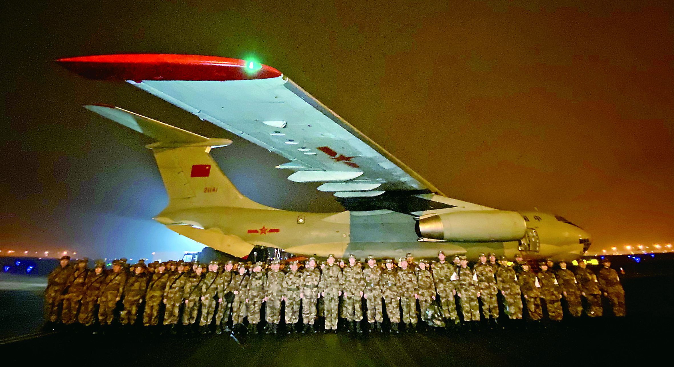 2020年1月24日晚,由陆军军医大学抽调精干医务人员组建的150人医疗队,连夜从重庆出发,飞赴武汉支援抗击新冠肺炎疫情。这是医疗队在重庆江北国际机场停机坪集结。 新华社发