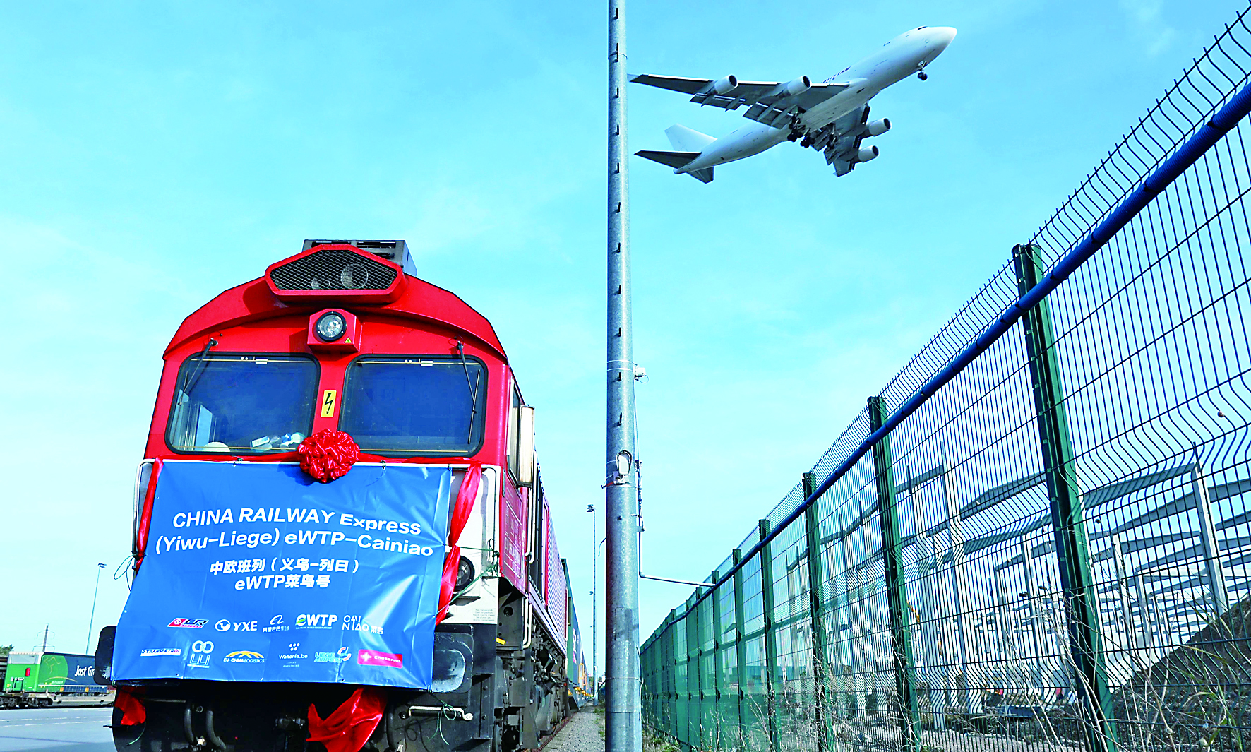 2019年10月25日,满载着82个标准箱的中欧班列(义乌—列日)“世界电子贸易平台(eWTP)菜鸟号”首趟列车抵达比利时列日物流多式联运货运场站。 新华社记者 潘革平 摄