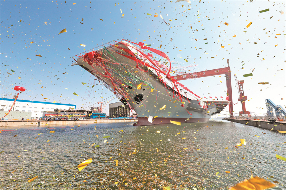 2017年4月26日,我国第二艘航空母舰下水仪式在中国船舶重工集团公司大连造船厂举行。 新华社记者 李 刚 摄