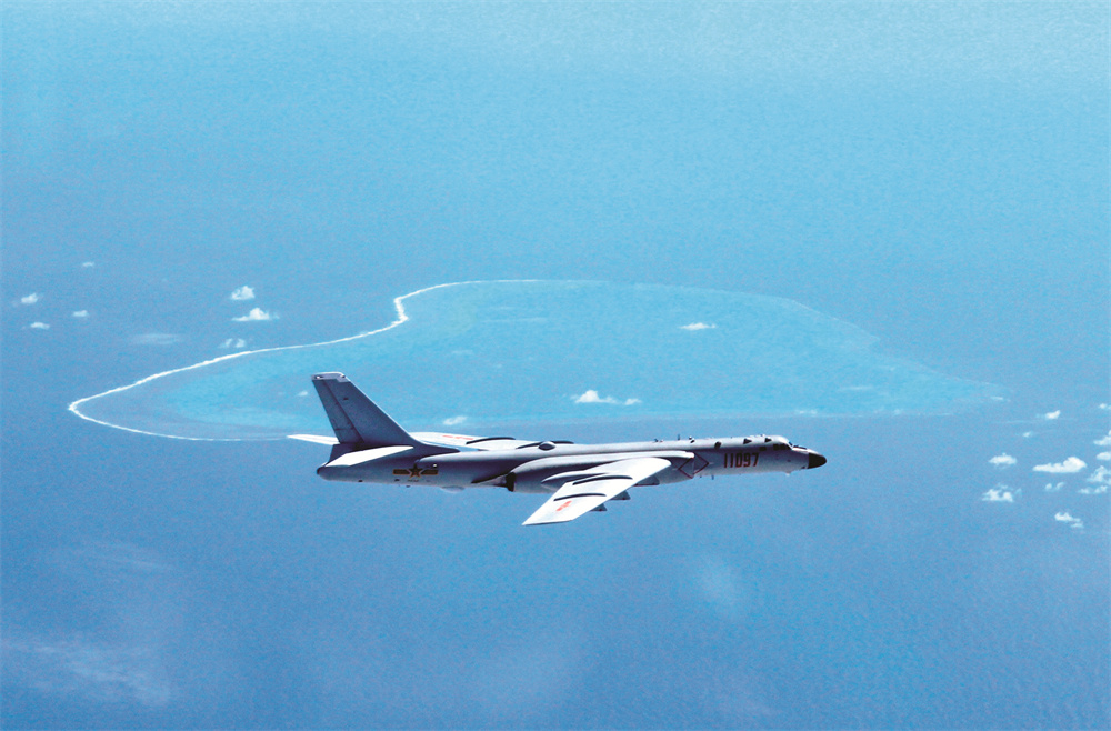2016年7月中旬,中国空军出动轰-6K战机赴黄岩岛等岛礁附近空域巡航。 新华社发(刘 锐 摄)