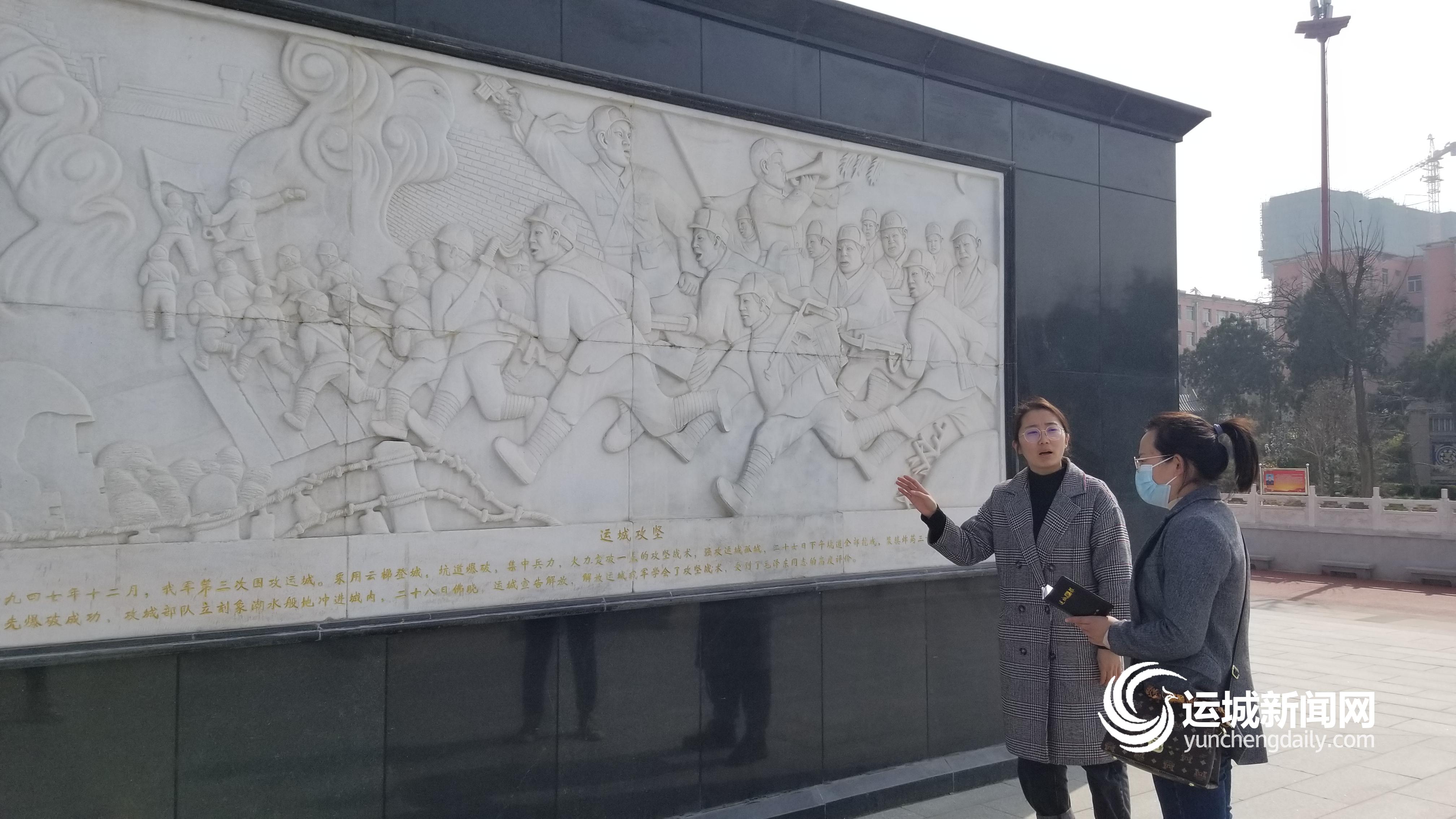 在盐湖区烈士陵园运城解放纪念碑碑座下面,有一幅名为“运城攻坚”的浮雕,栩栩如生地再现了当年运城攻坚战中,军民并肩战斗,前赴后继、浴血奋战、强行登城的壮烈场景。