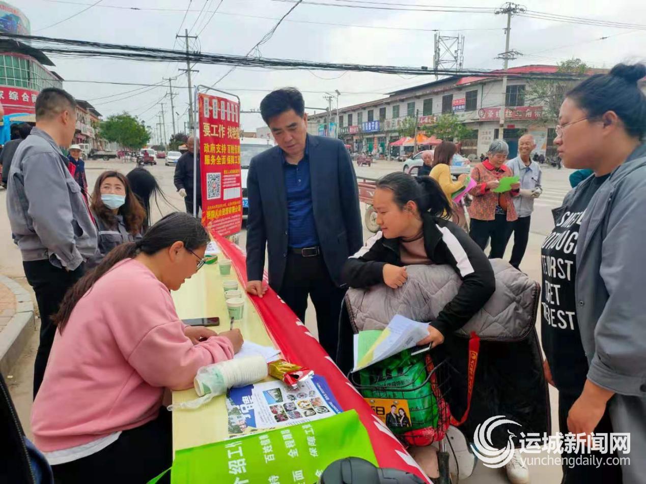 悬挂“永济市‘人人持证、技能社会’政策宣传暨就近就业增收招聘会”横幅的是就业宣传点,永济市人社局公共就业和人才交流服务中心组织永济本地5家用工紧缺单位、5家人力资源公司和2所技能培训机构来到宣传点,共提供就业岗位3300余个,让群众“一对一”与用工单位与培训机构进行交流咨询,当日共接受村民咨询500余人次,发放宣传资料400余份,切实保证宣传效果,提升群众满意度,提高我市就业率。