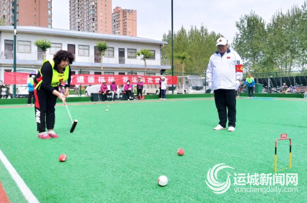运城晚报讯(记者 杜磊)一名老年队员在绿茵场上身手矫健地挥舞着球杆,准确地将球撞击进球门,随即场内外爆出一阵热烈的掌声和叫好声……近日,由市体育局社会体育指导中心主办、市老年人体育协会和市门球协会承办的2021年中国门球冠军赛运城赛区选拔赛在市区禹都公园门球场圆满收杆。来自各县(市、区)的20支代表队、200余位门球爱好者参加比赛。