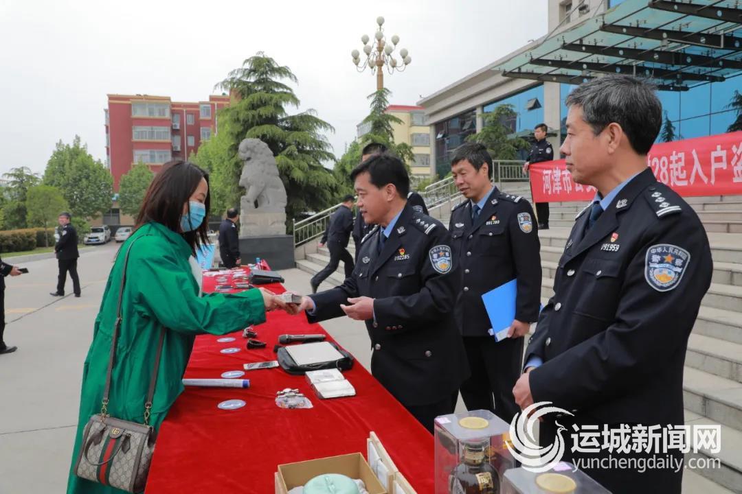 运城晚报讯(记者 樊朋展)近日,河津市公安局举行破获“28起入户盗窃案”涉案财物集中发还仪式。该局刑警大队、技术大队、情报大队民警,受害人代表30余人参加仪式。
