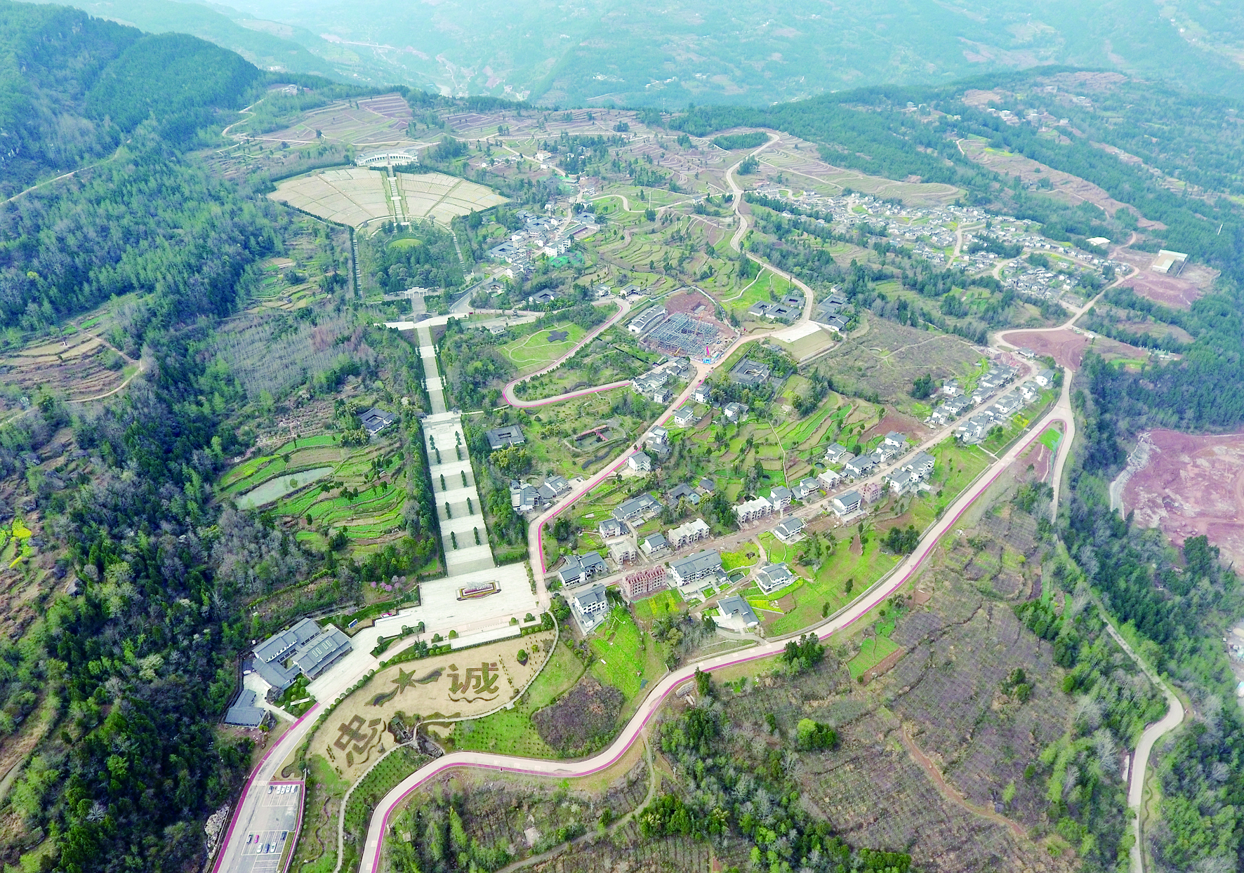 3月1日在巴中市通江县沙溪镇拍摄的红军烈士陵园和王坪村全貌(无人机照片) 新华社记者 刘 坤 摄