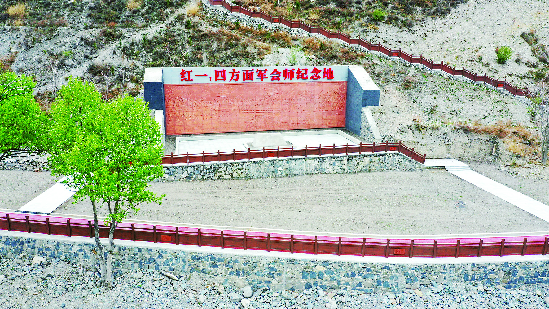 这是4月14日在四川小金县达维镇拍摄的红军会师纪念地(无人机照片) 新华社记者 王 曦 摄