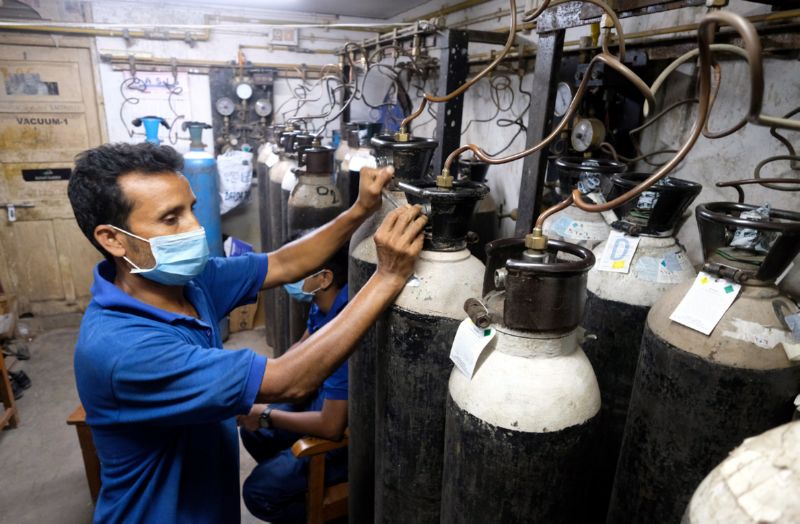 ▲4月28日,工人在印度加尔各答一家医院填充氧气瓶。印度卫生部28日公布的数据显示,该国累计新冠死亡病例超过20万例。印度医疗系统压力倍增,医用氧气供应和床位愈加紧张。