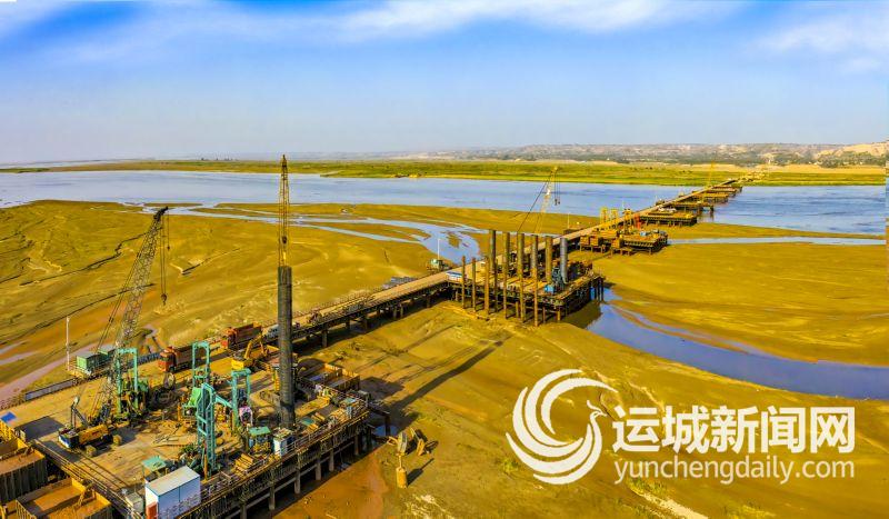 ▲5月9日,在临猗黄河大桥及引线工程项目工地,施工人员在加紧施工。